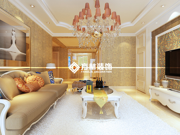 益格清水灣122平三室歐式風(fēng)格裝修效果圖,方林裝飾出品。