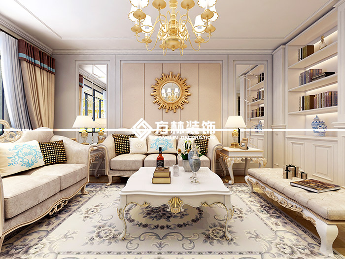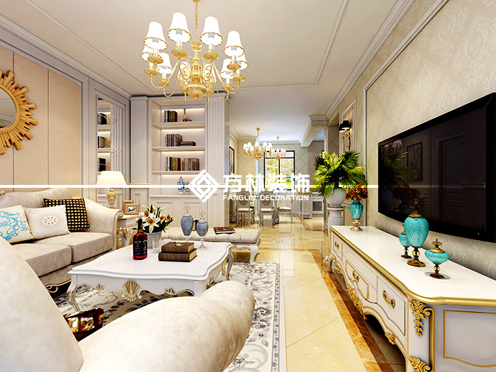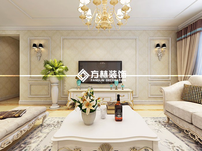 沈陽中南世紀(jì)城103平簡歐風(fēng)格裝修效果圖,三室兩廳兩衛(wèi)戶型,方林裝飾出品。