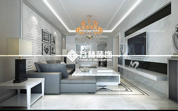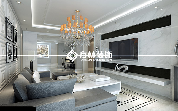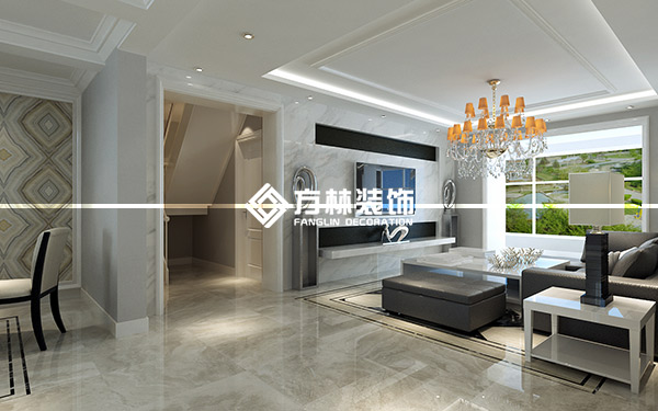 沈陽月星國際城帶閣樓240平裝修效果圖,黑白灰風格,方林出品。